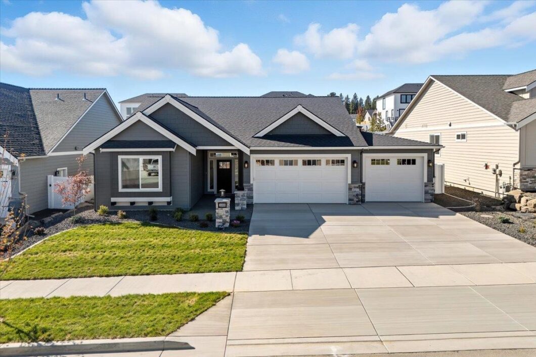 The “Tahoma” by Camden Homes is now available in Fairmont Estates, located in south Spokane Valley—completed and move-in ready! This highly desirable award-winning floor plan offers an open, inviting layout with thoughtfully curated selections by the Camden Homes design team. The Tahoma features convenient main-floor living with near no-step entry, making everyday living effortless. This home is built for comfort and efficiency, offering solar panels, natural gas heat, central A/C, along with a 3-car garage with openers on all doors. Inside, enjoy Kitchen-Aid stainless steel appliances with a gas range, LVP flooring throughout the main living areas, and a stunning stone-to-ceiling gas fireplace. The spacious primary suite is a true retreat, featuring a tile shower, soaking tub, and double vanity. Outdoor living is just as impressive with a covered back patio, fully fenced backyard, front and rear landscaping complete with a sprinkler system. Quiet Cul-de-sac lot and ideal close-in location! A MUST SEE!