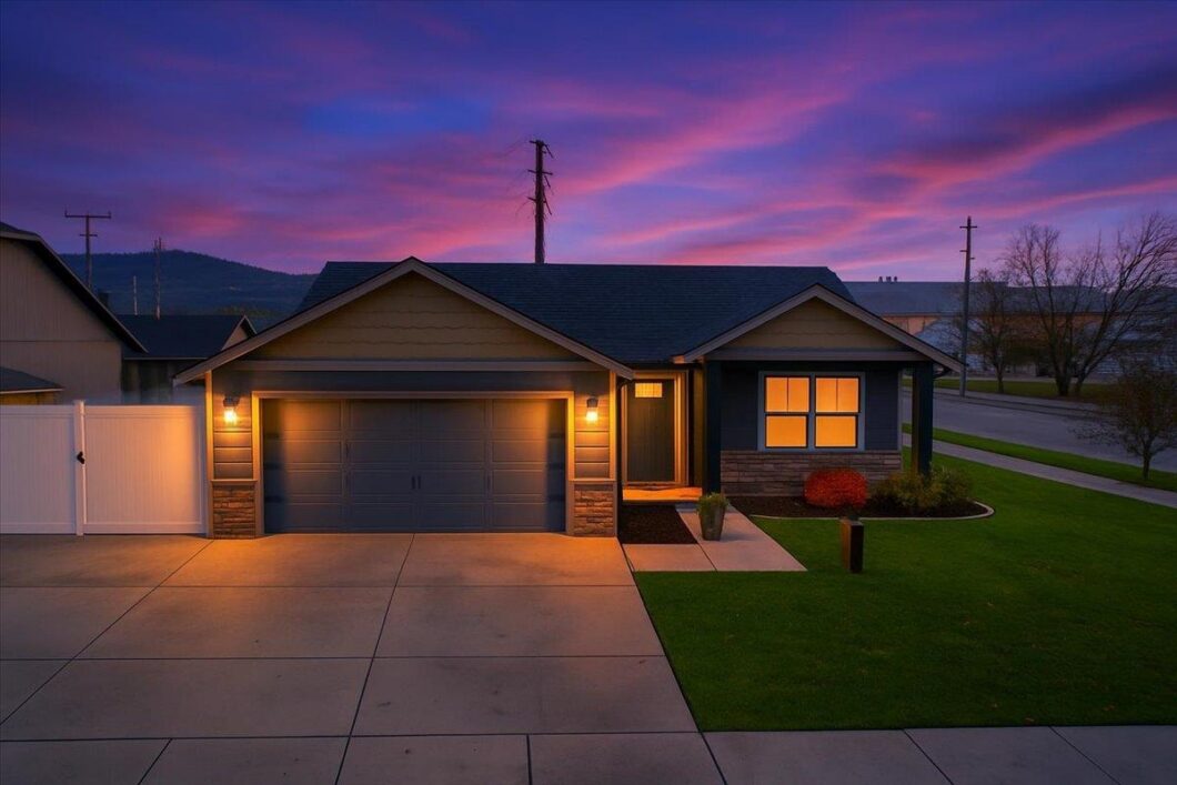 RIVER CROSSING RANCHER ON CORNER LOT! A super layout in this 2018 built one level home with approximately 1,233 sq/ft, 3br/2ba. There’s vaulted ceilings, gas range and all appliances stay including the washer/dryer! The primary suite has double closets, double vanity and shower insert w/doors. The main living area as laminate floors, corner gas fireplace, and dining area off the kitchen. You’ll love the corner lot, w/RV parking space on side of garage behind 10′ gate. The backyard is landscaped w/sprinkler system, concrete curbing and there’s a covered back patio. A great location just minutes from I-90 and Barker and close proximity to all schools, shopping, and services! A MUST SEE!!