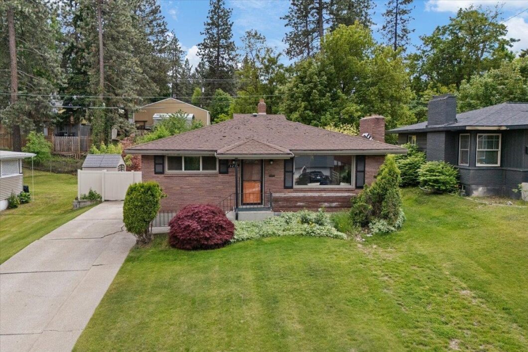 SOUTH HILL BRICK RANCHER! Resting high on the south side of the street, this gem has 1,067 sq/ft on the main level plus a full basement! Upon entry there’s a spacious living room with wood burning fireplace and large front window filling the room with inviting warm light. There’s 2br/1ba, galley kitchen including, gas range, DW, Refrigerator and flows to a spacious eating space with bay window! The lower level has a finished family room with new carpet, great storage, working bathroom fixtures and a perfect handy person’s work space! You’ll absolutely love the backyard – Covered back patio overlooks a private oasis of fruit trees, lilacs, raised garden beds and so much more! VALUE BUY & PRICED TO SELL AS-IS!